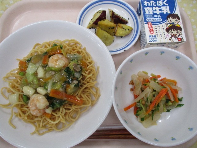 日本でさつまいもが広く栽培され親しまれるようになったのには、江戸時代の学者である青木昆陽という人が、さつまいもの育て方を研究し、日本中に広めたおかげです。この青木昆陽のお墓が目黒不動尊の裏にあることから、目黒不動尊では、毎年10月28日に「甘藷まつり」が行われています。給食ではこの甘藷祭りの日に合わせて、大学芋を用意しました。(甘藷とは、さつまいものことです)