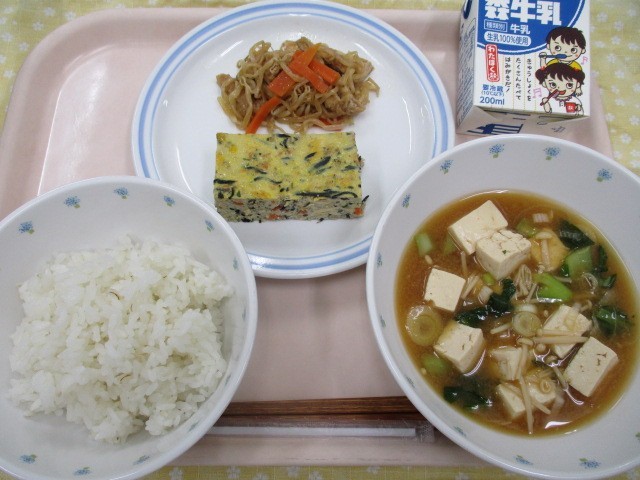 今日の千草焼きの卵には、たんぱく質、脂質、ビタミン、ミネラルなどいろいろな栄養素が含まれていて、栄養価が高い食品です。栄養価が高い卵にも、ビタミンCと食物繊維は含まれていないので、野菜と一緒に取ると補うことができます。いろいろな食品を上手に組み合わせていただきましょう。