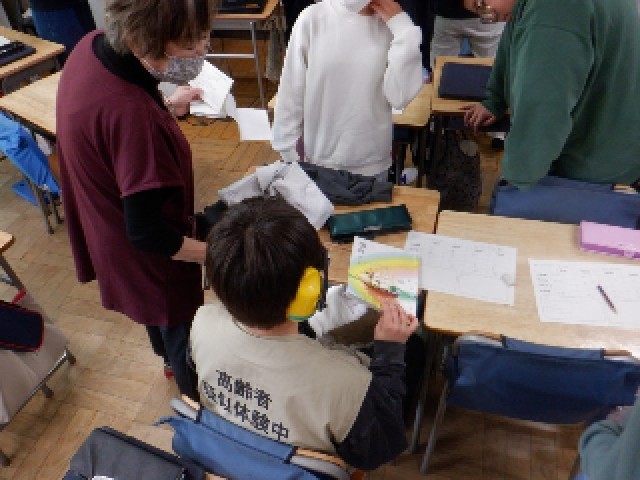 体が動かしにくかったり、目が見えにくかったり、耳が聞こえにくかったりすることなどを体験することで、お年寄りの方を少しでも理解し、自分たちにできることを考えました。