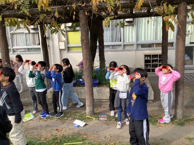 ひなたとひかげでは地面の温度がどのような違いがあるかを調べたり、遮光板の使い方を学習したりしました。太陽の光が地面を暖めていることを知り、冬でも陽に当たると暖かくなる秘密が分かったようです。