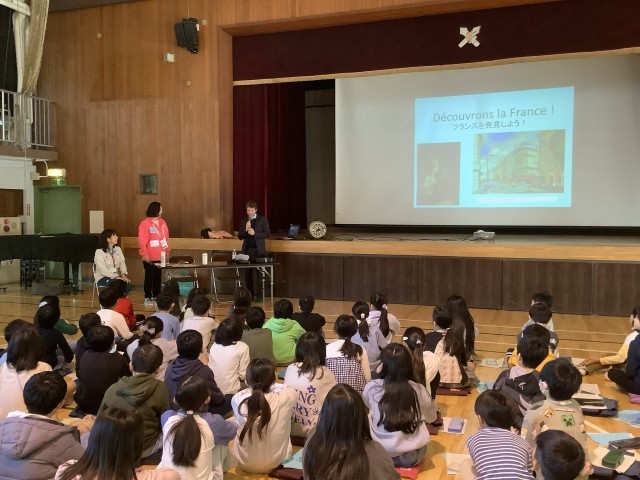 美しい風景の写真や聞き慣れないフランス語の発音に、子どもたちは興味津々。
