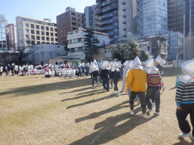 子供も教職員もいつも通り「お・か・し・も」の約束を守って真剣に行いました。