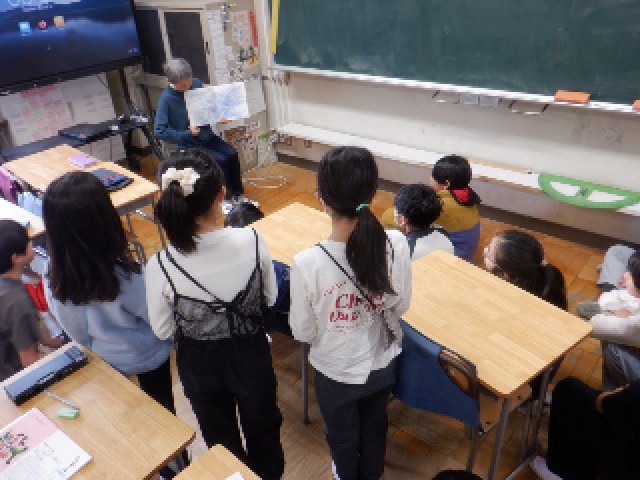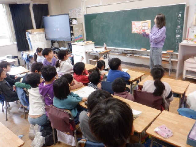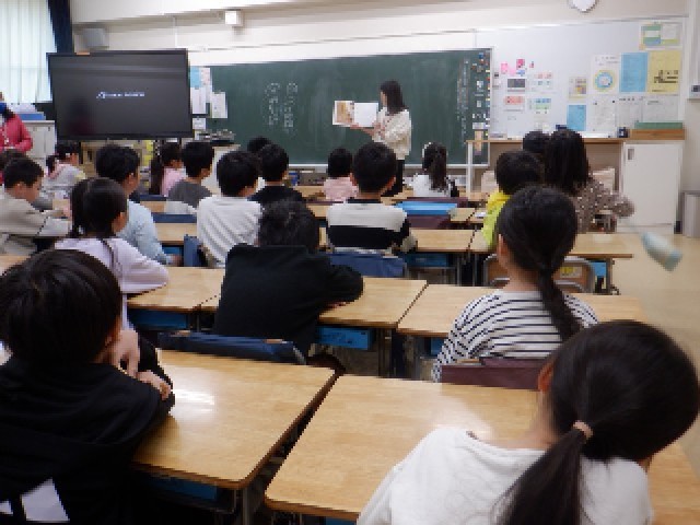 朝の読書の時間、月に1回程度、図書ボランティアの方が来て、読み聞かせをしてくださいます。