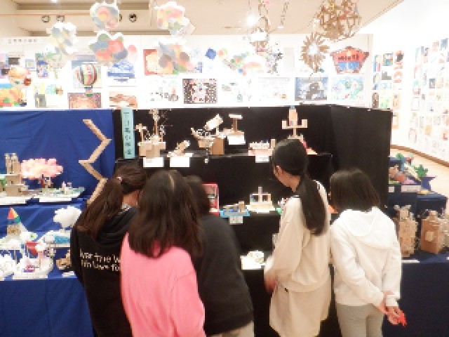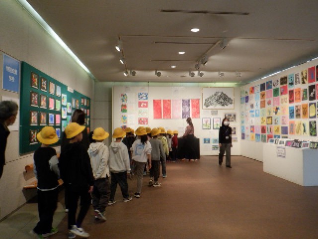 目黒区内の小中学校等の作品が並び、子供たちは楽しく鑑賞しました。