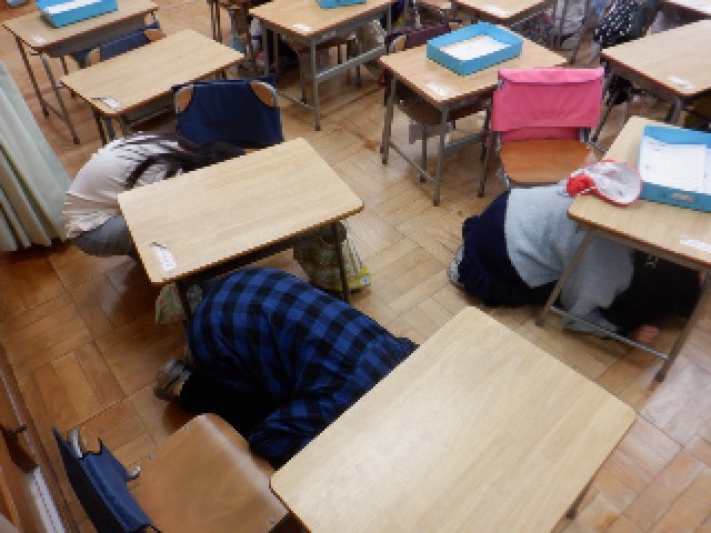 今回の避難訓練は、実施予告なしの地震。