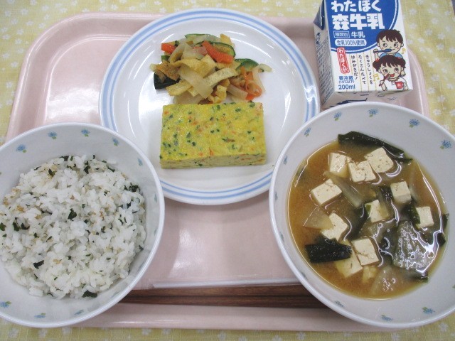 6年生が考えた献立、4日目です。おすすめポイントを紹介します。「わかめごはんは、わかめに含まれるミネラルや食物繊維が簡単、かつ、おいしく摂取できます。パリパリサラダは学校の給食でもかなり人気があり、わかめごはんと合うので入れました。具だくさんの卵焼きは彩を良くでき、野菜が苦手な人もおいしいと思えると考えました。旬の野菜を入れると、とてもおいしいと思います。」6年生の思いを受けっとって、味わっていただきましょう。