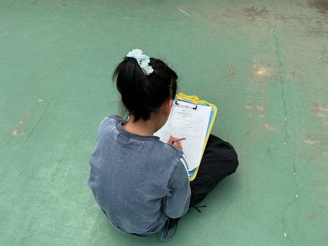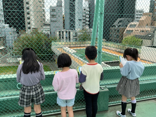 社会科の学習が始まりました。今日は苦戦しながらも方位磁針の使い方を学びました。また、屋上に行って学校のまわりの様子を調べました。初めての社会科の学習に、意欲的に取り組んでいます。