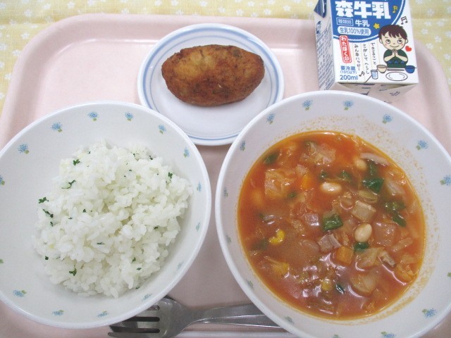 今日は給食世界紀行です。給食を通して世界の文化に触れてもらう献立です。
