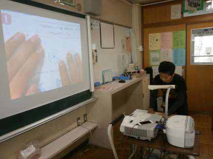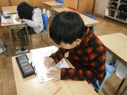 6年生の算数科の最初の単元は、対称な図形について学習しています。線対称や点対称な図形の意味やそれぞれの性質について、作業を通して学んでいます。