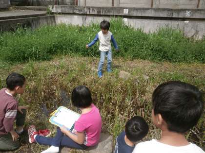「あっ!見てみて」とおたまじゃくし、たんぽぽ、さくらなどたくさんの春を見つけることができました。