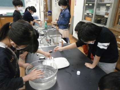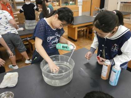 理科では、物の燃え方を学習しています。今日は、物が燃え続けるために空気が入れ替わり続けることが必要なこと、空気の中でも酸素が物を燃やすはたらきがあることを実験を通して確かめました。特に集気びんに集めた酸素にろうそくの火を差し入れると火の勢いが激しくなる様子に驚きました。