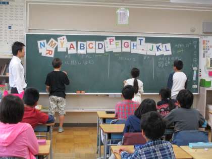 ALTのサイモン先生の発音をよく聞いて、楽しみながらアルファベットについて学習しました。