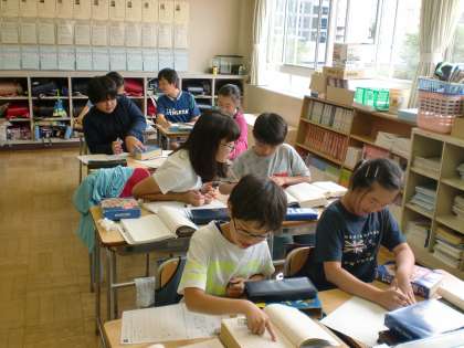 今日は、漢字の部分(へん・かんむり・つくり)が表す意味を学習しました。それぞれの部分の成り立ちから、何を意味するのかを確かめ、その後その部分をもつ漢字を調べました。はじめは個人で、時間をおいて2人組で調べを進めました。特にペア学習では、互いに協力しながら、国語辞典や漢和辞典、教科書を熱心に調べ、ワークシートにびっしりと漢字を書き込んでいました。
