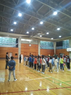 2日目の朝を迎えました。皆さん元気です。体育館で朝会を行いました。