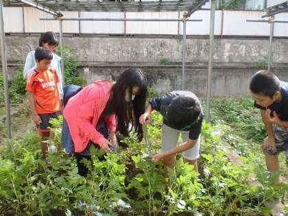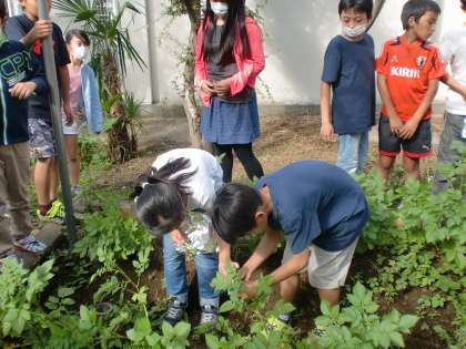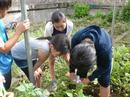 梅雨の合間の晴れ間を見計らい、春先にビオトープ植えたジャガイモを使って、実験を進めました。実験の意図を把握し、調べる条件を自分たちでしっかりと確かめることができました。