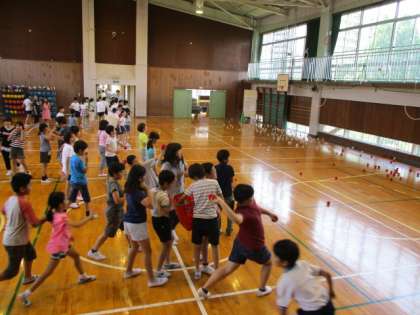 的をねらってボール投げに挑戦しました。