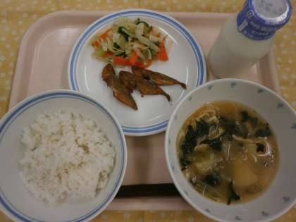 野菜や梅干しが苦手な子が多いのか、残菜がいつもより多くなってしまいましたが、あるクラスでは「今日の野菜超おいしい」「梅が効いててすごくおいしい」と好評でうれしかったです。