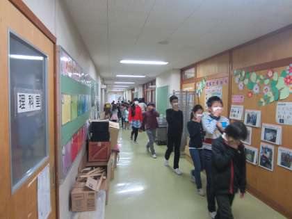 今回の避難訓練は、予告なしで昼休みの清掃の時間に行いました