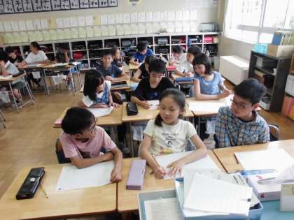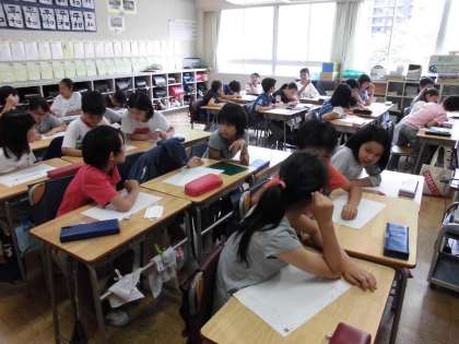 国語科では、友達へのインタビューを通して、質問の仕方や答え方、記録の取り方を学んでいます。まずインタビューをする下準備として、友達の好きなことを一つ取り上げ、5つの質問を考えました。興味をもちやすい内容だったこともあって、意欲的に質問を考えていました。