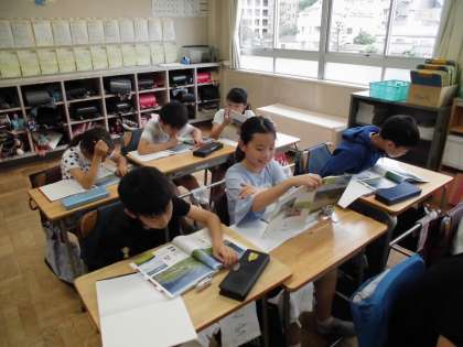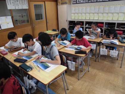 社会科では、稲作業と稲作農家の学習が始まりました。導入として、教科書で取り上げられている新潟県南魚沼市について、地形や気候を確かめ、当地が稲作業に適していることを話し合いました。