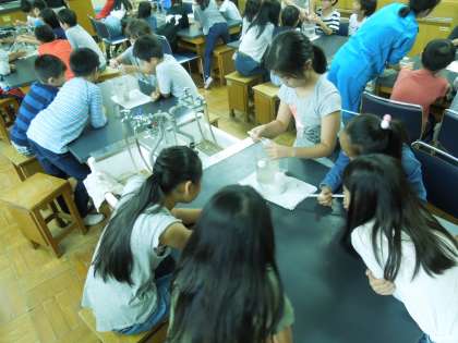 目の前で起こる現象に、目をまん丸くする子ども達。