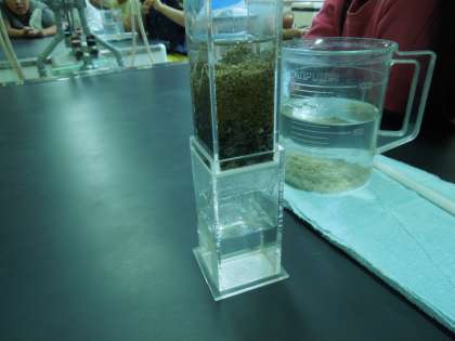 沈殿させた上澄みをろ過し、さらにきれいな水に。