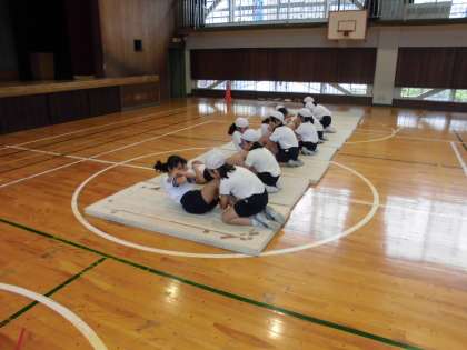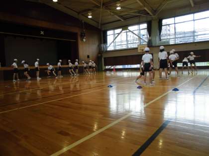 本校では、現在体力テストを行っています。5年生は自分の記録だけでなく、高学年として2年生の記録のお手伝いも行いました。反復横跳びのやり方を実際に自分でお手本になって教えたり、上体起こしで2年生の足を力加減を考えながら抱えたりと、上級生らしい態度で関わることができました。