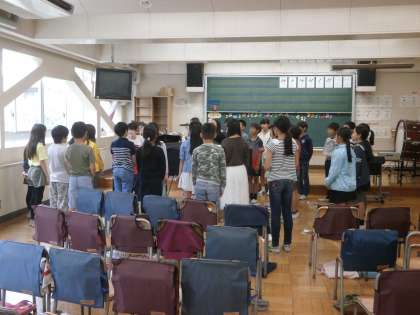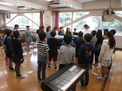 音楽の時間では、離任式で歌う歌を練習しました。