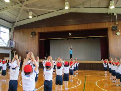 体操の隊形への開き方をやったり、体操でのポイントを確認しました。