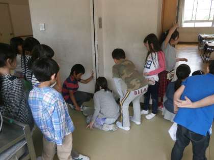 3組では、2年3組の掃除の時間の見学にいってきました。先輩たちは私語を謹んで、手を休めることなく掃除をしていました。机や椅子の運び方、使った雑巾の始末の仕方など、1年生も一生懸命見て学んでいました。