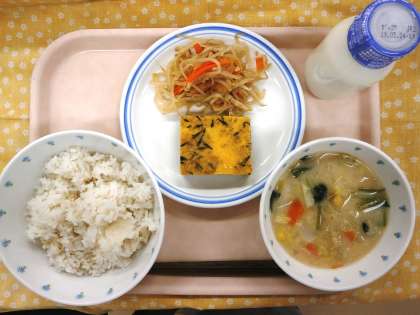 今日は気温が上がったことと、運動会の練習も進んでいることで、普段よりも食が進まない子が多くみられました。もやしの甘酢煮は、酸味がきいてさっぱりとしていて、食べやすかったのではないかと思います。