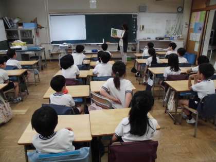 読み聞かせサポーターの皆さんによる、今年度初めての読み聞かせがありました。2年生は普段からちょっとした時間にも本を読む姿が多く見られ、読書に親しんでいます。サポーターの方のお話に真剣に耳を傾けている姿が印象的でした。