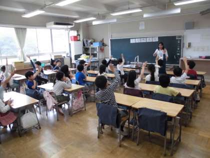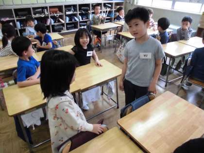 今年度初めての外国語活動が行われました。講師の先生の大きなジェスチャーと発音に引っ張られるように、生き生きと英語を発音していました