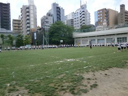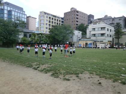 2時間目と3時間目に、校庭で2年生と一緒にダンスの練習をしました。自分の踊る場所や隊形移動の仕方を覚えました。退場の練習もしました。