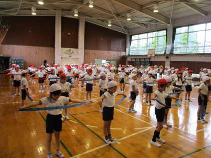 今年の運動会の表現運動は「フックト・オン・クラッシックス」という、リボンを使ったダンスです。