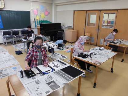 2組も書き初め会を行いました。書き始めから名前を書き入れるまで1時間近くになりましたが、最後まで集中してがんばりました。