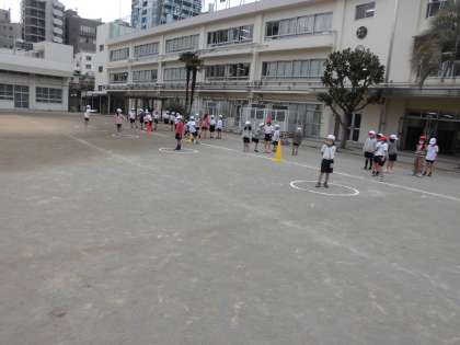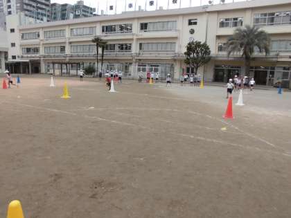 バトンは、普通の筒のバトンではなく、リングバトンという輪になっているものを使います。トラックを走るのではなく折り返しになります。