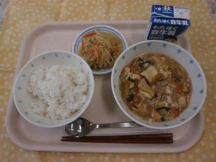 今日は中国の四川料理の一つである「家常豆腐」でした。本場では揚げた豆腐を使って作りますが、今日は厚揚げを使って作りました。家常とは、「家庭でいつも食べる」という意味で、各家庭で違ったレシピがあるそうです。今日は甘めの味つけにしました。