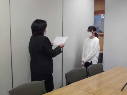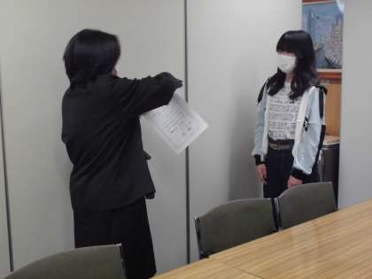 お昼の会で、校内書き初め展の優秀賞に選ばれた児童の中から、代表で6年生が校長先生から賞状をいただきました。
