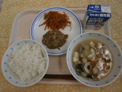 今月の本から飛び出したメニューは、「つなみ」の本から福島県の郷土料理の登場です。『10年前、東日本大震災がありました。この本は、その時子どもたちが何を見てどう感じたかを描いた作文が載っています。今日の給食に出ている福島県の郷土料理は苦しくつらい避難生活を支えたのではないでしょうか。日本では何度も大きな災害が起きています。作文を見て、みなさんは何を思いどう行動するか考えてみてください。』