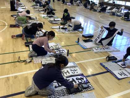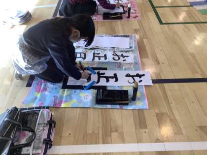 初めての毛筆での書き初めに挑戦です。「2022年もきれいな字が書けますように。」と願いを込めて、みんな静かに集中していました。練習の成果を発揮し、「お正月」を書き上げることができました。