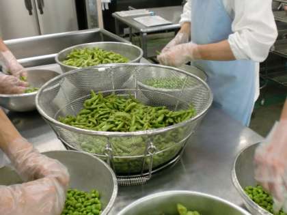 調理員さんが、丁寧にさやむきをしてくれたので、きれいな緑色の「ずんだ」が出来ました。