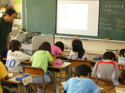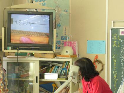 「長さ」の勉強です。2年生40人が2つの教室に分かれて、正しいものさしの使い方を学んでいます。細かい目盛りを測るのが難しいようです。