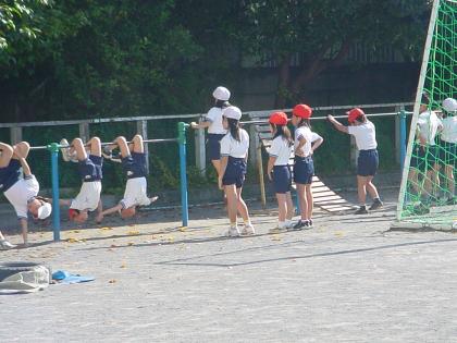 2年生は鉄棒・うんてい・登り棒などのいろいろな技に挑戦中です。逆上がりができる子が増えてきました。