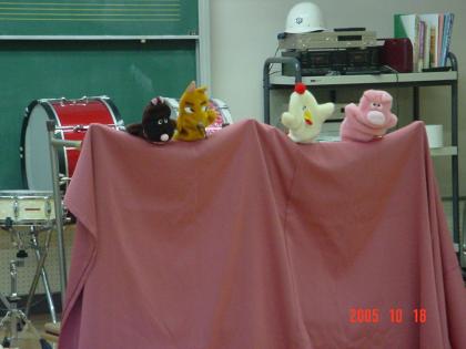 20日の勤労感謝集会で行う人形劇の練習をしていました。4年生の多いクラブですが、どの子もがんばっています。