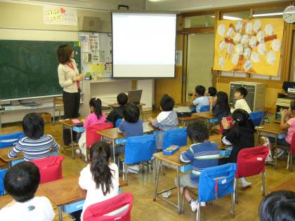 「かずとかんじ」いろいろな数え方の学習です。鳥はわ、人はにん、車は台、木は本、本はさつ、紙は枚、花は輪と束、馬は頭、箸はぜんなどデジタル教科書での授業でした。1時間集中してよく発表していました。