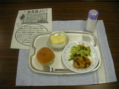今日の献立は丸パン・ポテトコロッケ・茎わかめ入り野菜ソテー・りんご・牛乳です。ポテトコロッケはもちろん給食室の手作り。じゃがいもたっぷりのやわらかめのコロッケなので今日はすこしパンクが多くなってしまいました。パンクした分は先生たちにがまんしてもらって、子どもたちにはきれいに揚がったコロッケを食べてもらいます。野菜ソテーには茎わかめが入っています。シャキシャキしていて意外と合うんですよ。今日は残食が少なそうです。