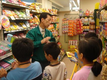 スーパーマーケットは商品を売るためにどんな工夫をしているのか、お客さんはどうしてスーパーマーケットに来るのかを調べるために、特売日でにぎわうサンデーマートを見学させていただきました。ふだんは入れない売り場の裏側で、肉や魚や野菜のパッキングの様子や、品物の仕入れの様子を見せていただきました。また、売り場では商品の並べ方の工夫をお店の人から教えていただいたり、お客さんにも積極的にインタビューしたりしました。ご協力いただいた皆様、ありがとうございました。