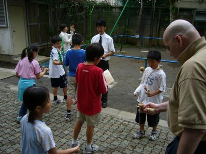 火曜日の6時間目にクラブ活動があります。伝統文化クラブでは「けん玉」に取り組んでいました。今までにお茶、生け花、百人一首、将棋、囲碁などに挑戦してきました。マーク先生も参加していました。