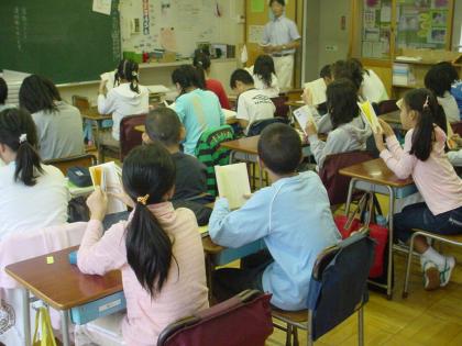 朝読書の様子です。4年生と5年生です。火曜日、水曜日、金曜日です。